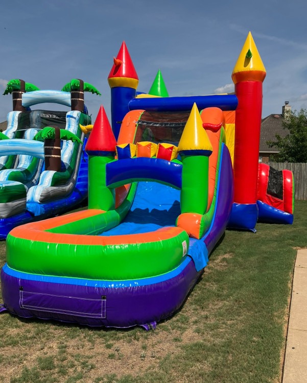 Mega Rainbow Water/dry Slide Bounce House Combo